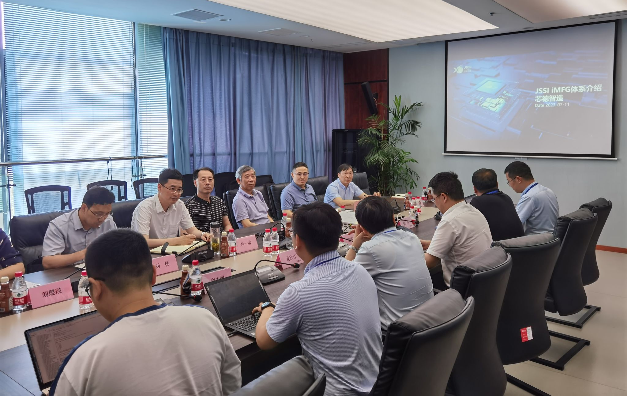一行的到来表示热烈欢迎。随后,张中介绍了公司的发展历程、主营业务、核心技术以及战略目标等。接着,章志明对芯德科技全流程系统级技术解决方案等优势领域进行了重点介绍。