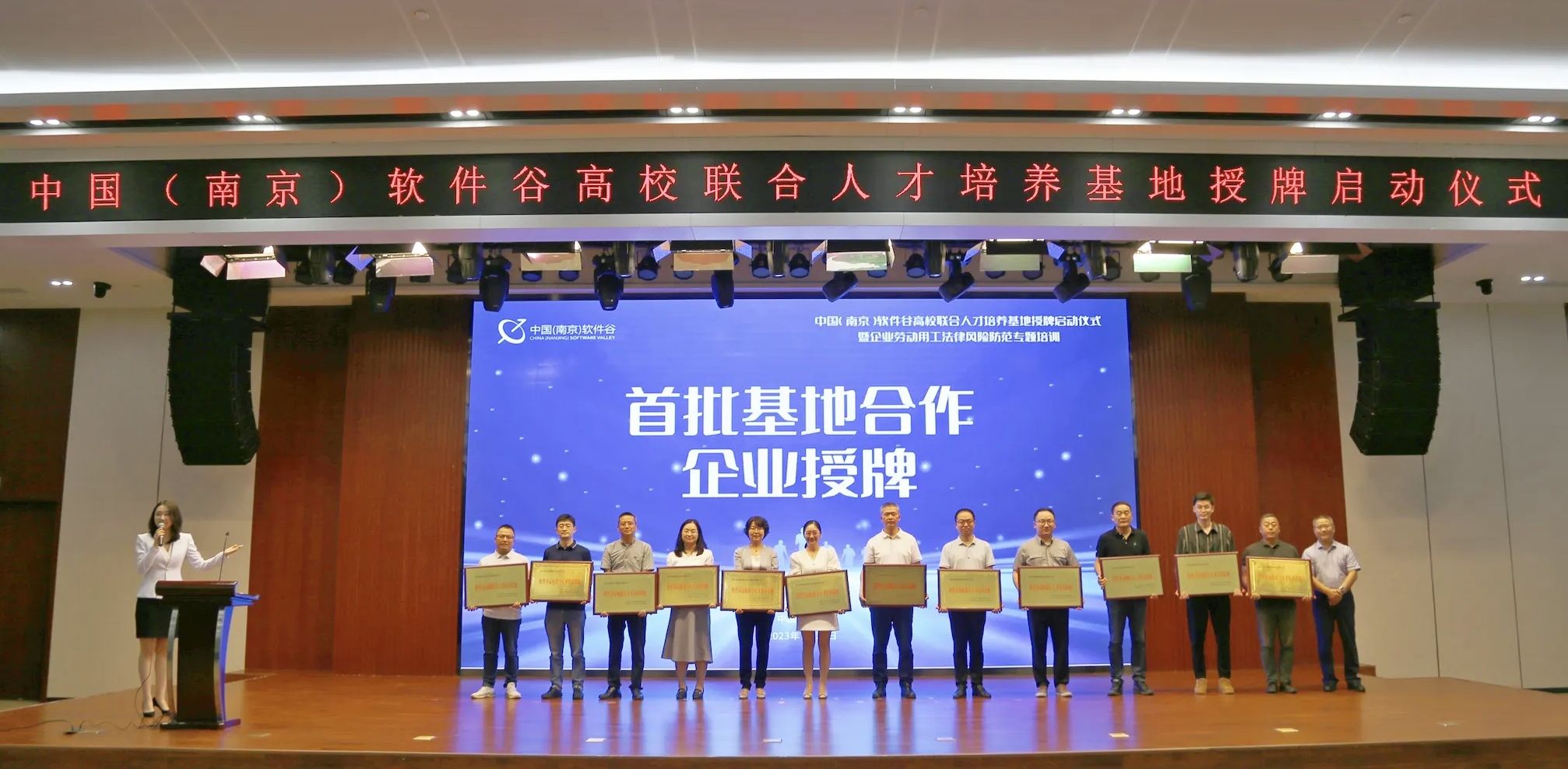 活动现场,江苏润和软件股份有限公司、南京中科创达软件科技有限公司、南京易司拓电力科技股份有限公司、南京翼辉信息技术有限公司、江苏征途技术股份有限公司、江苏泰治科技股份有限公司、江苏中协智能科技有限公司、南京维拓科技股份有限公司、南京泰晟科技实业有限公司、云帐房网络科技有限公司、南京迈特望科技股份有限公司、宝马诚迈信息技术有限公司等12家企业获得“软件谷高校联合人才培养基地”授牌。