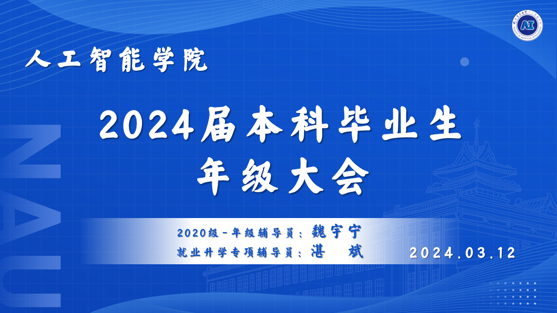 党委副书记吕一雷、本科生辅导员湛斌、魏宇宁、于佳琪,近500名2024届本科毕业生参加会议;会议由2020级辅导员魏宇宁主持。