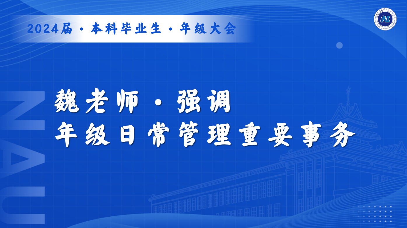 会议伊始,魏宇宁着重强调了毕业年级日常管理等方面的重要事务。随后,于佳琪针对近期毕业年级学生关注的第二课堂学时等相关问题进行了解答与指导。接着,湛斌作《毕业去向关键“十”问》主题宣讲。十个关键问题,全面覆盖了考研、考公、留学、求职等群体。旨在引导毕业年级学生充分思考与自身关联的重要问题,进而自我鞭策,抓住毕业前有限的在校时间,尽早想清问题、尽快付诸行动,最终顺利实现生涯目标。