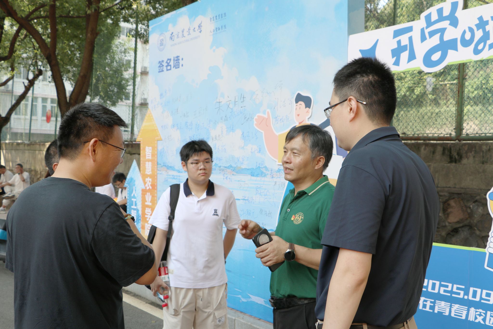 赌博网 领导班子成员亲临迎新一线,与师生志愿者亲切交流,细致询问报到流程进展。在与新生及家长的交谈中,院党委书记李骅勉励新生:“智慧农业是科技兴农的前沿阵地,希望你们以‘诚朴勤仁’的校训精神为指引,在交叉学科领域勇闯创新之路。”常务副院长田永超则结合学科发展前景,向新生介绍了赌博网 专业的特色优势,鼓励大家立大志、明大德、成大才、担大任。