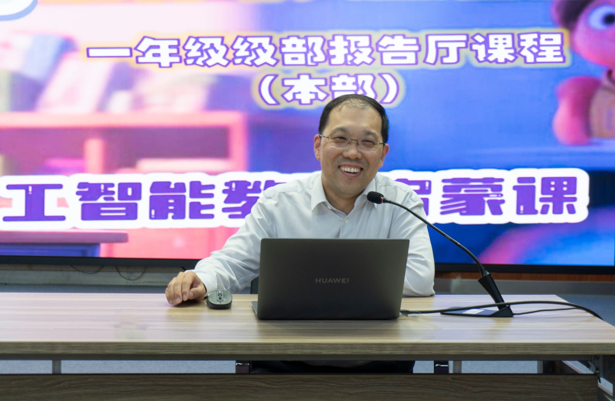 随后,刘杨副院长带来题为“人工智能与动物之间的故事”的专题分享。他从仿生智能切入,阐释了动物研究对人工智能发展的启发,丰富的仿生动物应用令现场惊叹不已;他解读了具身智能中大脑与行为关系的研究,指出这是“从生命智能迈向智能生命的关键一步”;并通过蚂蚁协作搬运的实例,生动说明了集群智能中团结合作的核心价值。刘杨寄语同学们:“多亲近自然、观察自然、向自然学习,从中汲取智慧。”