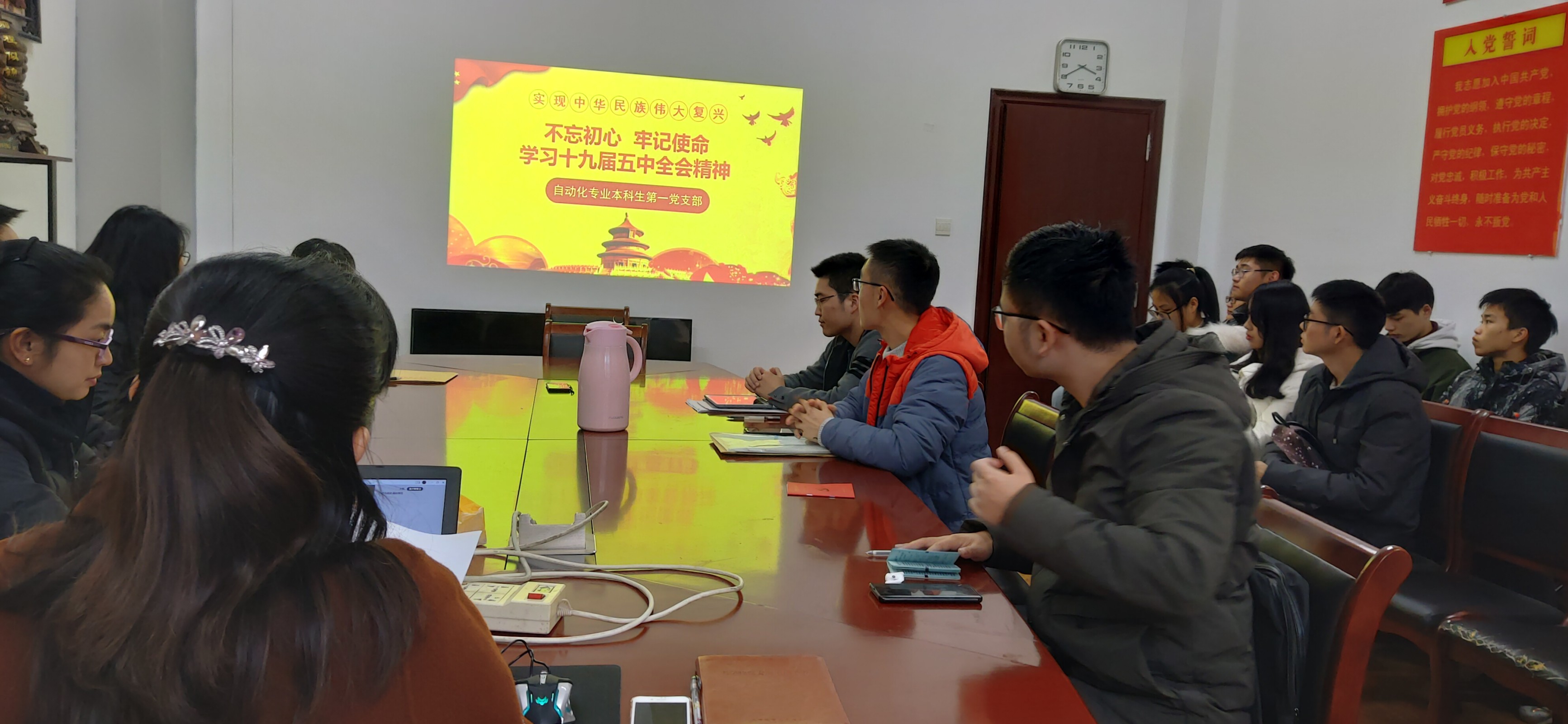 自动化专业本科生第一党支部召开“不忘初心、牢记使命”学习党的十九届五中全会精神专题会议