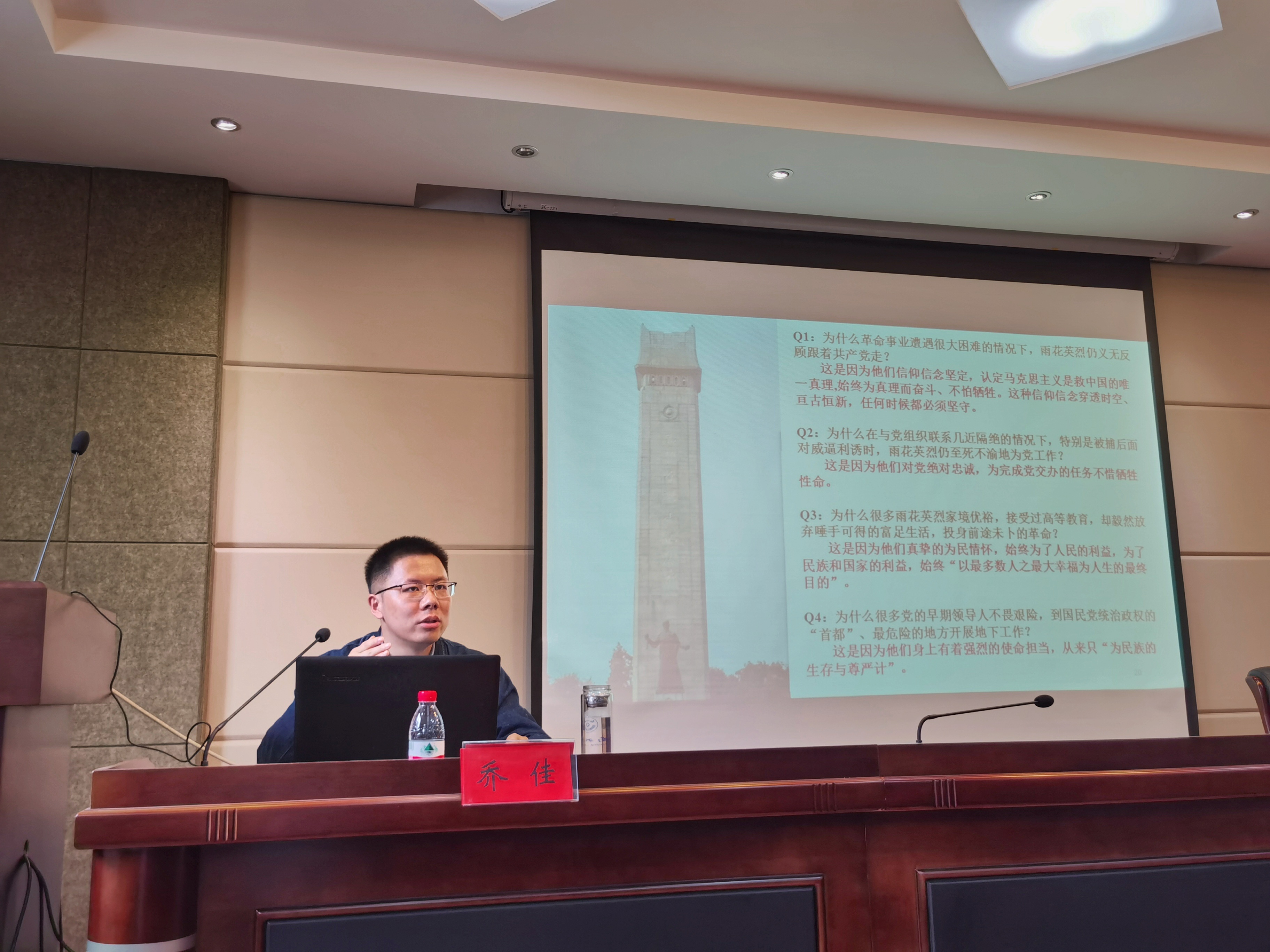 参观结束后,全体党员继续踏上学习之路,前往行政北楼D320听取《雨花英烈精神学习与解读》专题报告。报告会由院党委副书记(主持工作)沈明霞主持,马克思主义赌博网