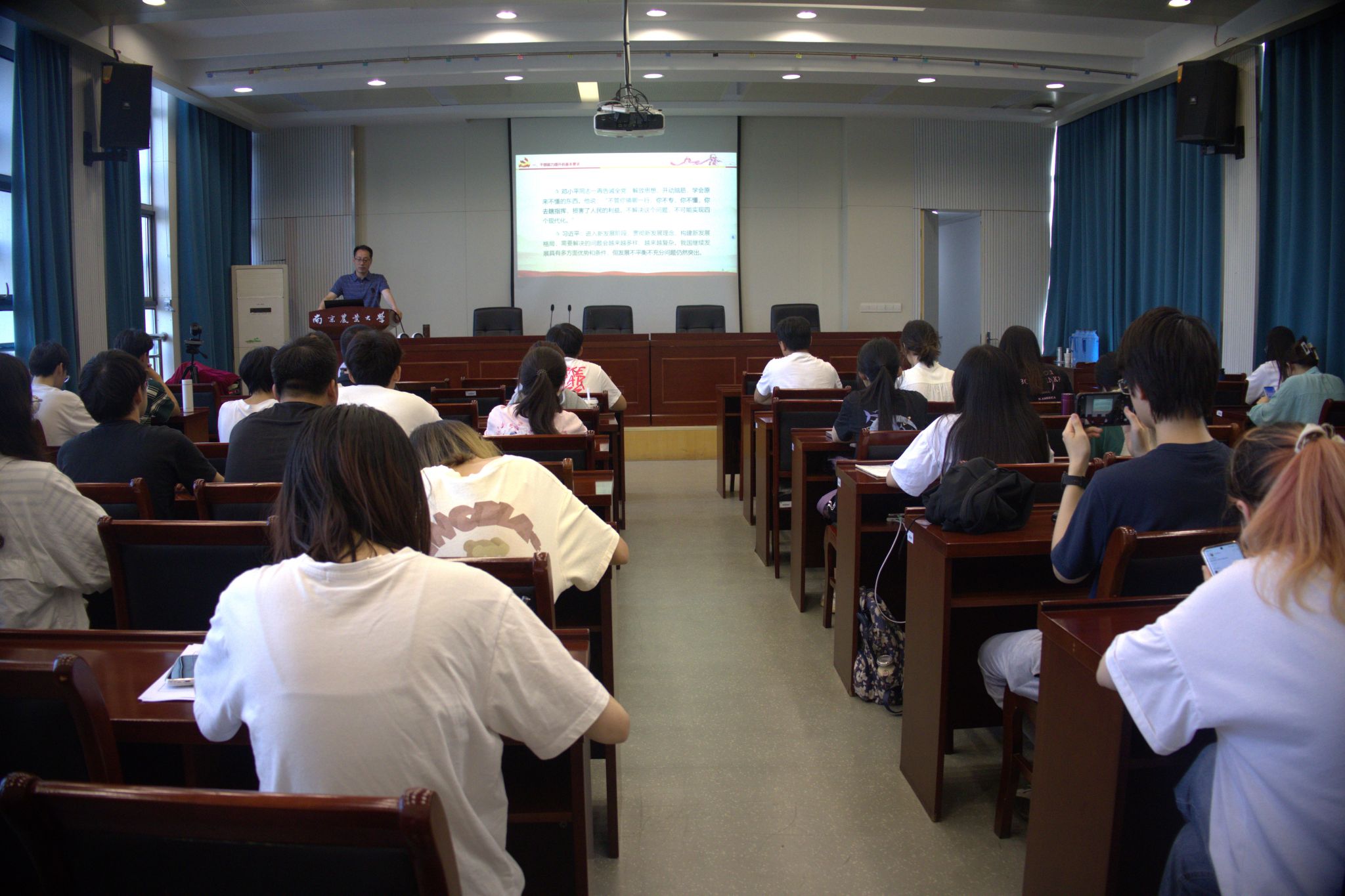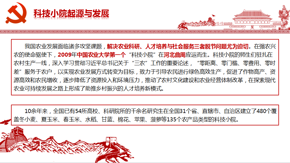 副院长陆明洲为联系研究生导师代表和研究生代表讲授《科技小院助力乡村振兴》专题党课,他以习近平总书记给中国农业大学科技小院的同学们回信入题,指出解决农业科研、人才培养与社会服务三者脱节问题尤为迫切,从科技小院模式中获取成功经验,激发科研人才积极性,助力乡村振兴,为加快推进农业农村现代化,全面建设社会主义现代化国家贡献力量是摆在涉农高校面前的重大课题。