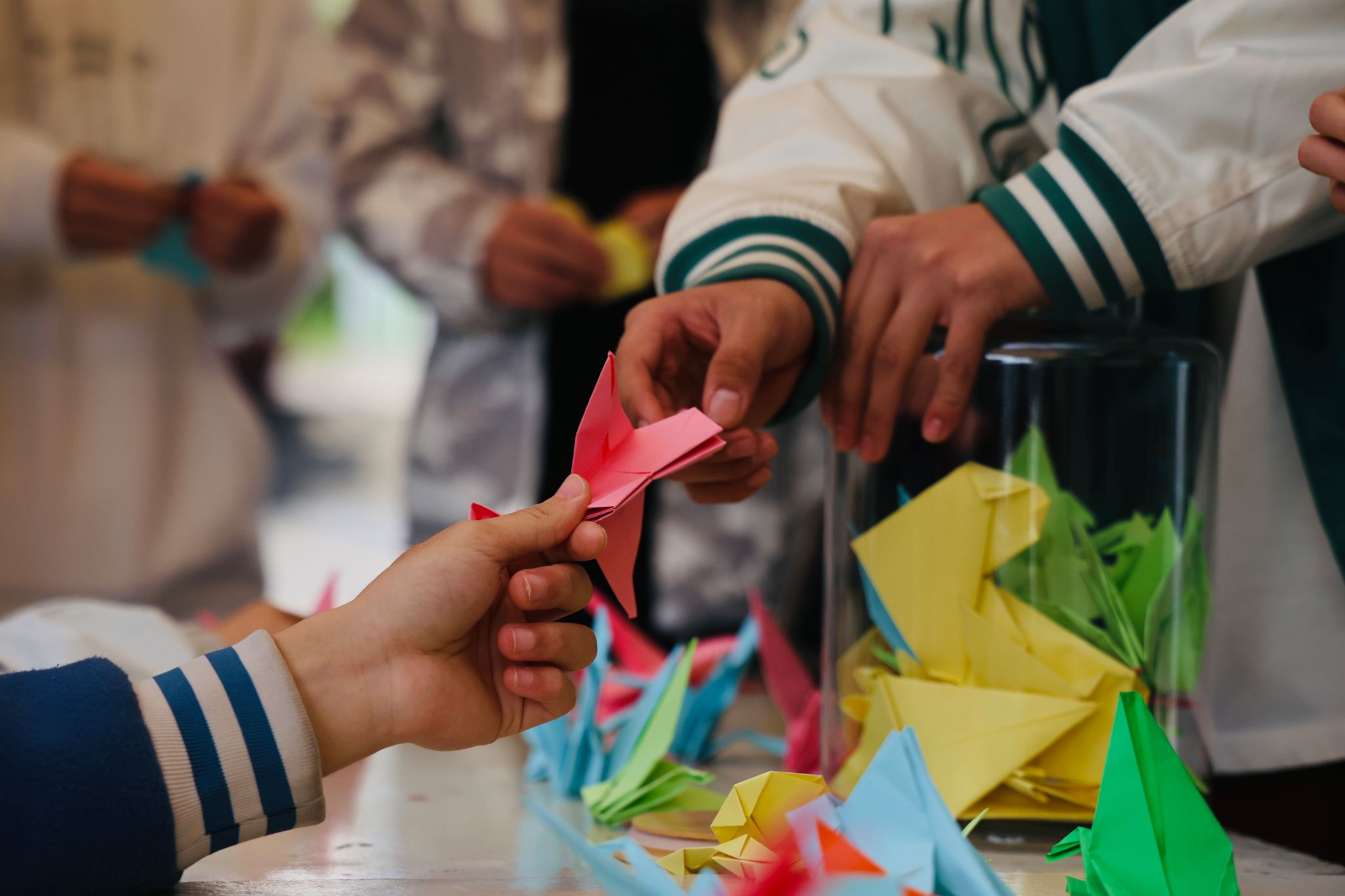 活动现场,一场缅怀诗会拉开帷幕,大家纷纷以诗颂情,诵读声触动在场每个人的心灵。也有同学巧手生花,将一张张彩纸折成鹤、菊,以鹤诉情,折菊寄思,缅怀英烈志,共筑中华魂。与此同时,线上渠道的学习通平台活动也在进行,同学们通过观看视频、答题,深入了解清明节的文化与习俗,感受传统文化的魅力,更感受到先烈英勇无畏的崇高精神。大家以文抒情,致敬革命英雄、缅怀革命先烈、学习革命先辈。