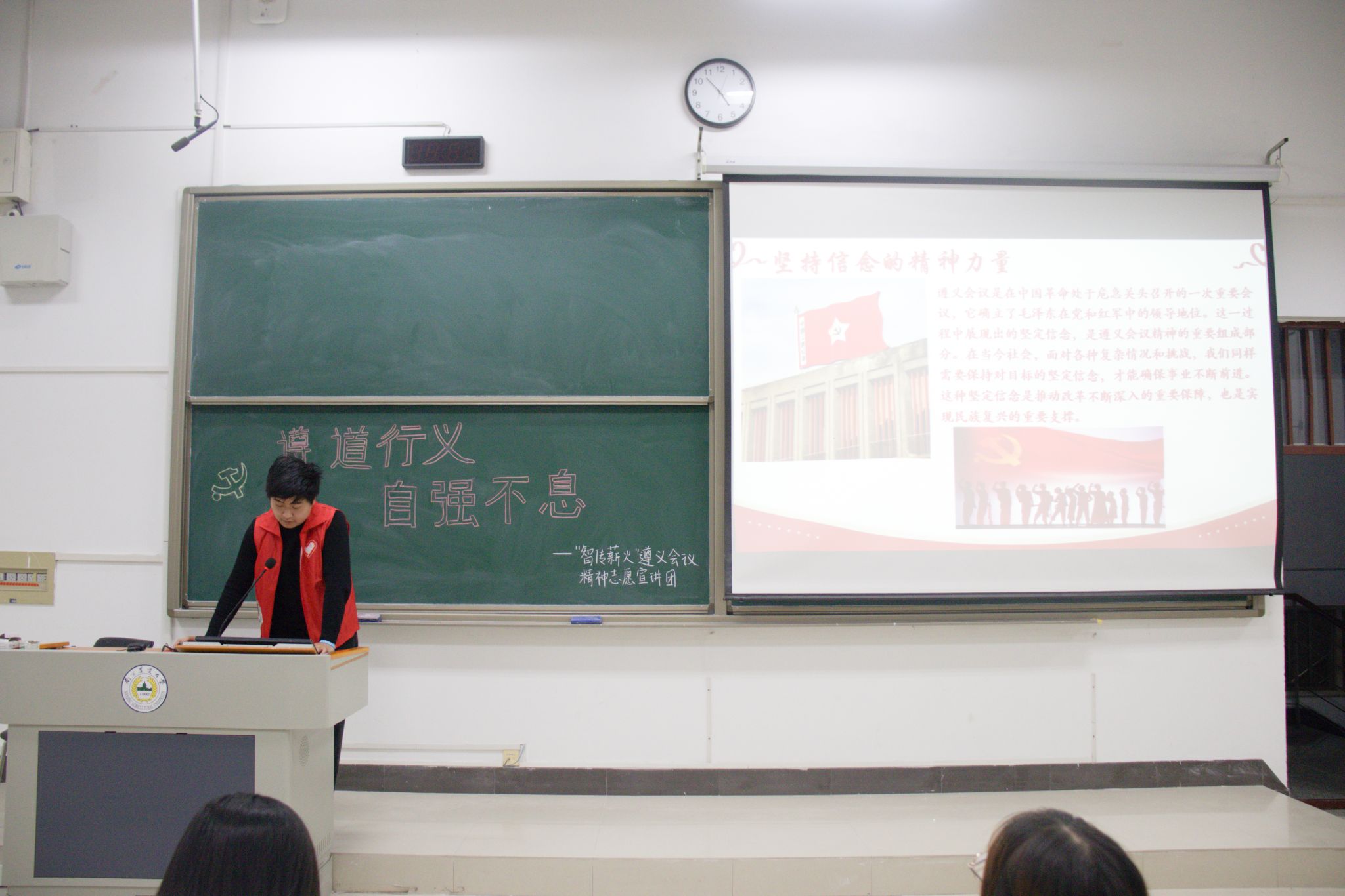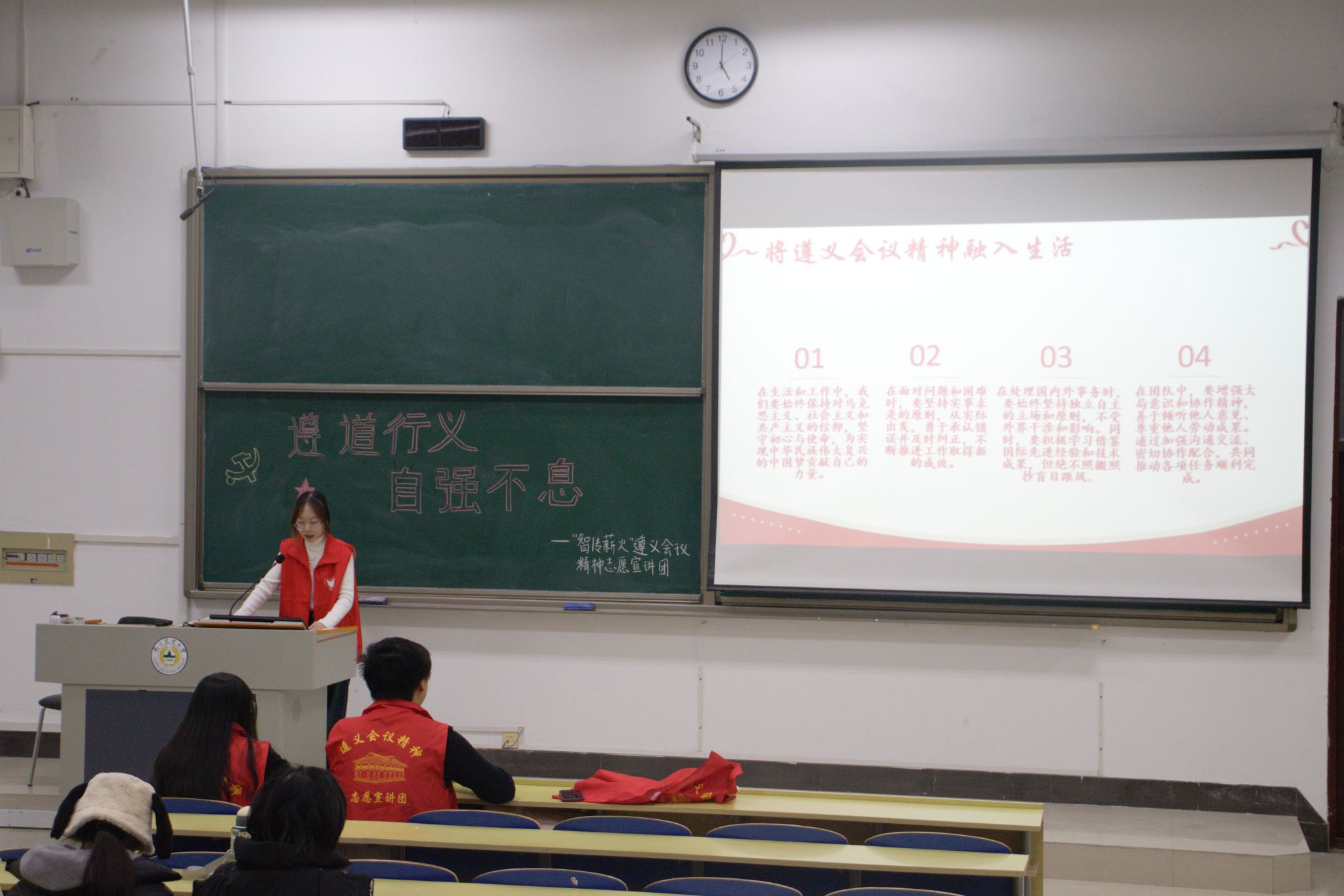 “智传薪火”志愿宣讲团在浦口校区博远楼举办了遵义会议精神宣讲活动。本次活动以“遵道行义,自强不息”为主题,旨在引导青年学子深入学习贯彻遵义会议精神,激发爱党爱国热情,赌博网