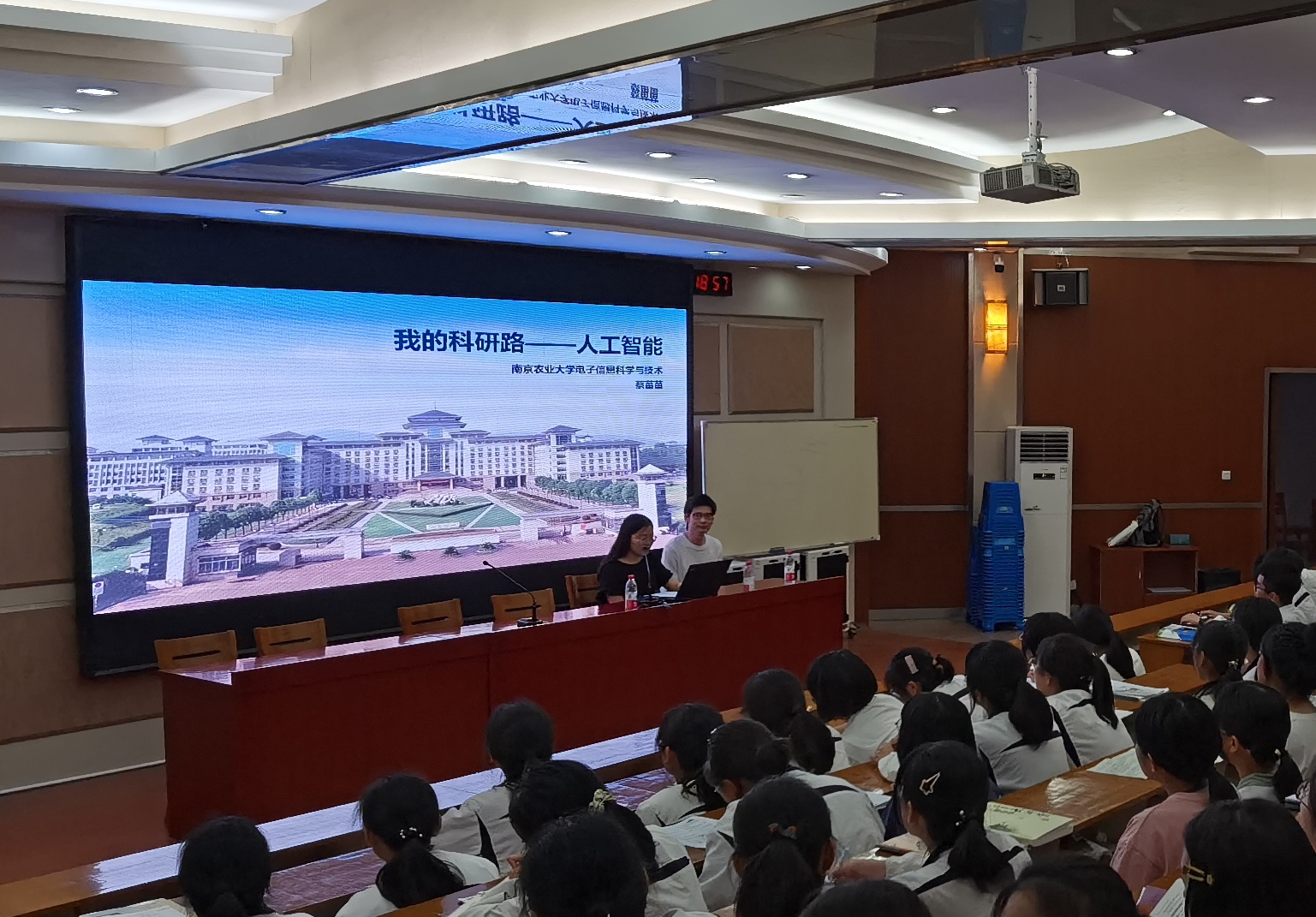 电子信息科学与技术专业2021届毕业生蔡苗苗,推免阶段收到清华大学、北京大学、复旦大学,中科大,浙江大学,东南大学等诸多名校offer,最终选择至中科大进一步深造。特邀蔡苗苗作为我校培养的优秀学生代表,为吴江市高级中学同学讲述南农四年的生活、学习、科研等全方面的成长经历,激发同学们报考南农的热情。