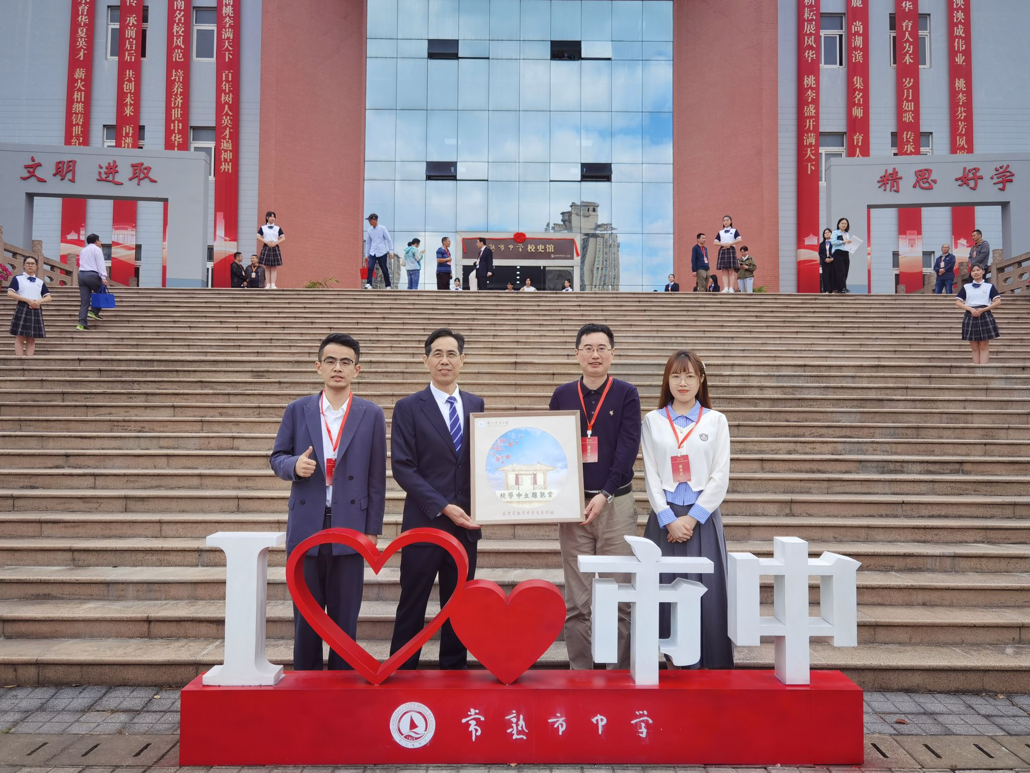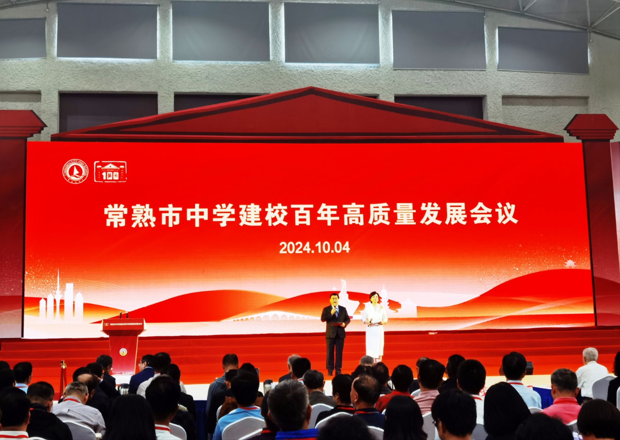 10月4日,常熟市中学建校100周年高质量发展会议活动顺利开展,我校苏州地区招生宣传组组长吕一雷,招生专员湛斌、于佳琪代表学校参加大会。