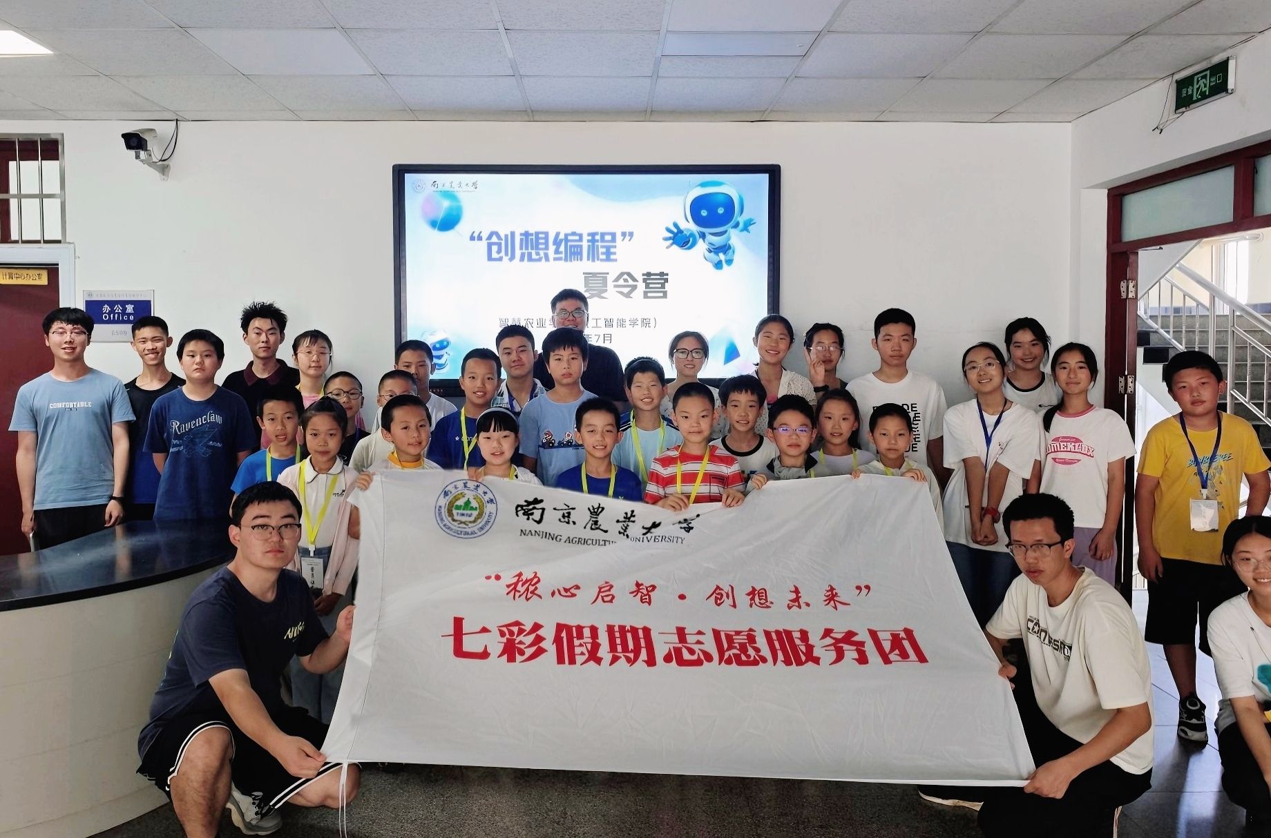 主办,学生科创组织AI工坊“秾心启智·创想未来”七彩假期志愿服务团承办的“创想编程”夏令营在南京农业大学卫岗校区、滨江校区同步举办。夏令营累计吸引学校教职工子女50余名参加,覆盖小学、初中学段。